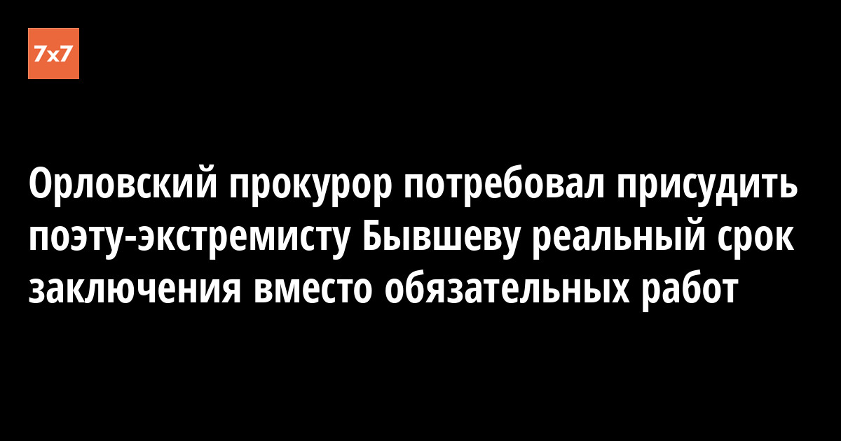 Прокурор Кромского района Орловской области Алексей Трянзин обжаловал приговор внесенному в список экстремистов поэту Александру Бывшеву: вместо общественных работ он потребовал реального заключения. Об этом Бывшев 30 апреля написал на своей странице в Facebook.