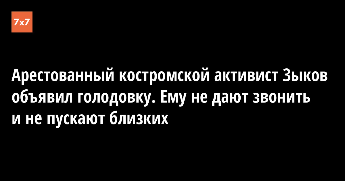 Он сообщил, что отказывается от пищи уже более двух суток. Оперативно связаться с адвокатом Зыкова Антоном Михайловым корреспонденту «7х7» не удалось.