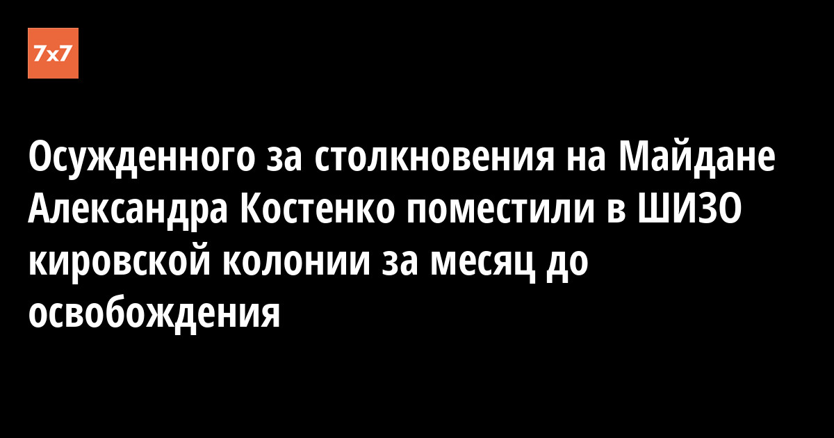 Как рассказали в ОНК, Костенко поместили в штрафной изолятор (ШИЗО) 21 июня за то, что он находился в спальном помещении отряда, нарушая установленный распорядок. Сам Костенко свой проступок не отрицал, поскольку несогласным со взысканием дают 10 суток ШИЗО. За неделю до этого Костенко уже получил устный выговор за то, что занавесил спальное место. Политзаключенный ранее сообщал членам ОНК, что его кровать стоит у входа на сквозняке. Как рассказали в колонии правозащитникам, Костенко грозит третье взыскание, поскольку он не держал руки за спиной в ШИЗО вне камеры.