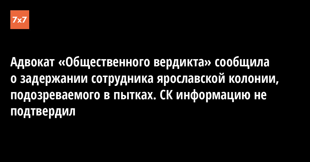 Адвокат благотворительного фонда «Общественный вердикт» Ирина Бирюкова 21 июля в своем Facebook сообщила, что в ярославской исправительной колонии №1 задержали одного из сотрудников, который попал на видео с пытками их подзащитного. Пресс-секретарь ярославского следственного управления Следственного комитета РФ опровергла «7x7» эту информацию.