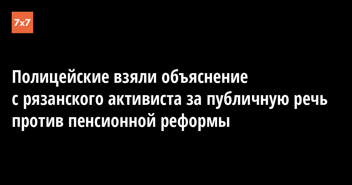 Сторонник «Левого фронта» Александр Евдокимов публично выступил против пенсионной реформы на улице Почтовой 20 июля. Его речь прервали полицейские, чтобы взять письменные объяснения. Видео с места событий появилось в группе «Точка протеста. Рязань» в социальной сети во «ВКонтакте» вечером того же дня.