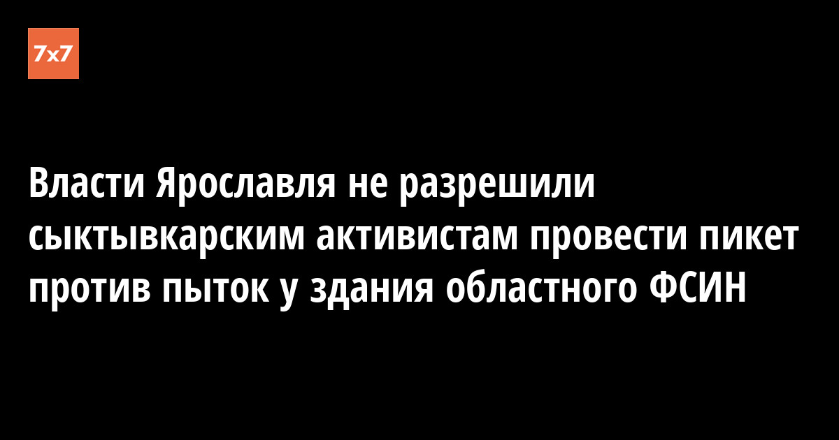 Администрация Красноперекопского района Ярославля не разрешила сыктывкарской активистке Дарье Чернышёвой и юристу фонда «Общественный вердикт» Эрнесту Мезаку провести 27 июля пикет возле здания областного управления ФСИН. Чиновники сослались на то, что у них нет оригинала заявки. Об этом «7x7» сообщил Эрнест Мезак, который 27 июля получил отказ в проведении мероприятия.