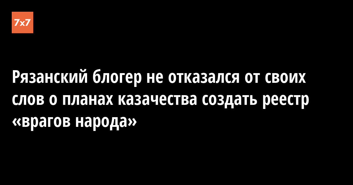 Получить комментарий у казачьего генерала Андрея Даценко «7x7» не удалось: его телефон оказался вне зоны доступа. Руководитель Казачьего информационно-аналитического центра (КИАЦ) Алексей Зборовский рассказал «7x7», что созвонился с рязанским казачьим генералом Андреем Даценко, и тот заверил: никакого реестра создавать не собирались.