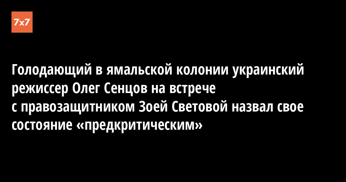 Правозащитник Зоя Светова получила разрешение Федеральной службы исполнения наказания (ФСИН) посетить голодающего в ямальском Лабытнанги украинского режиссера Олега Сенцова. Светова рассказала RTVI о встрече с Сенцовым.