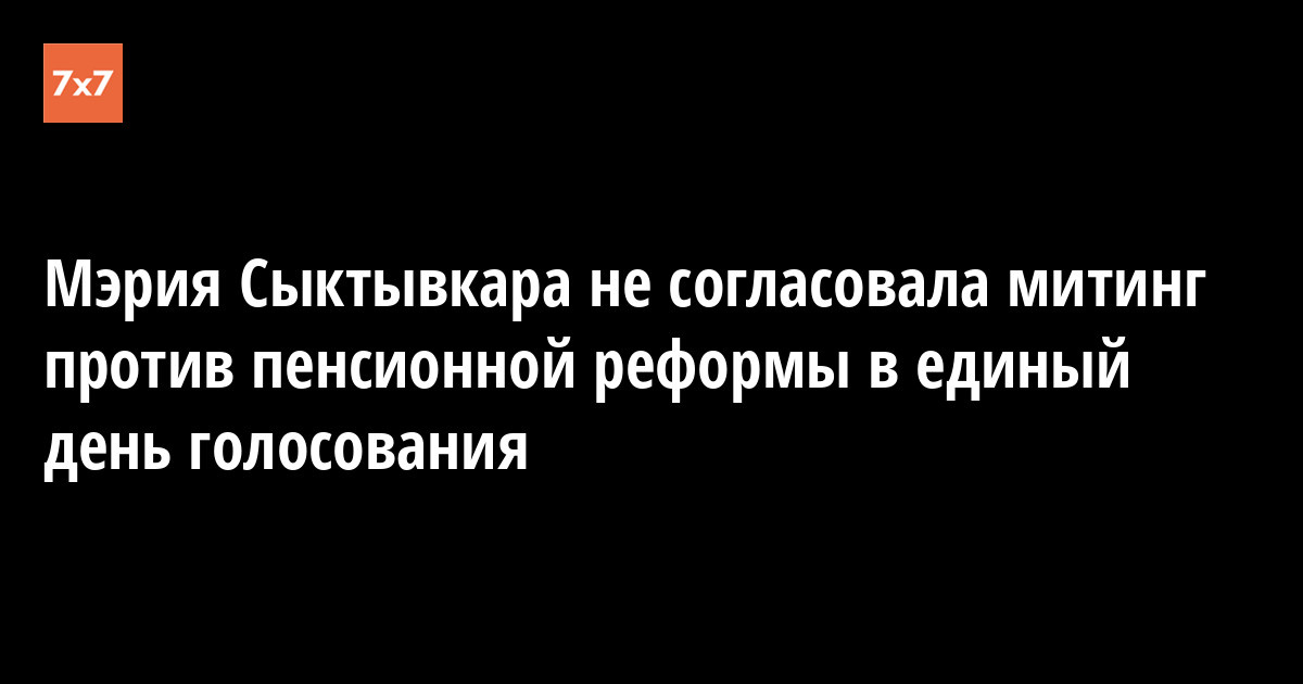 Мэрия отказала в согласовании митинга и шествия против повышения пенсионного возраста в Сыктывкаре 9 сентября. Об этом «7x7» 4 сентября сообщил организатор мероприятия Дмитрий Прокушев.