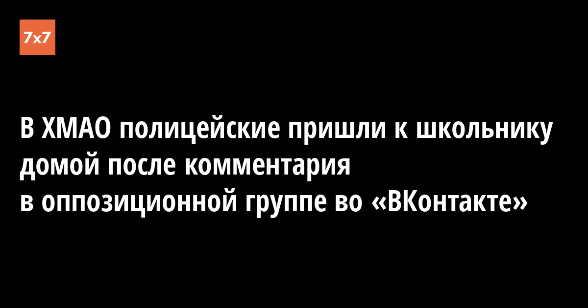 Сотрудники полиции 4 сентября пришли домой к 15-летнему жителю поселка Сергино Октябрьского района Ханты-Мансийского автономного округа Юрию Корееву после того, как он прокомментировал пост в соцсети «ВКонтакте» в группе «Навальный Сургут». Об этом «7x7» сообщила заместитель руководителя правозащитного проекта «Открытой России» Полина Немировская.