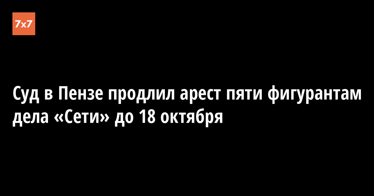 В Пензе 13 сентября Ленинский районный суд продлил арест пяти фигурантам дела о террористическом сообществе «Сеть». Антифашисты Арман Сагынбаев, Дмитрий Пчелинцев, Андрей Чернов, Илья Шакурский и Василий Куксов останутся под стражей до 18 октября. Об этом «7x7» рассказала мать одного из них Светлана Пчелинцева.