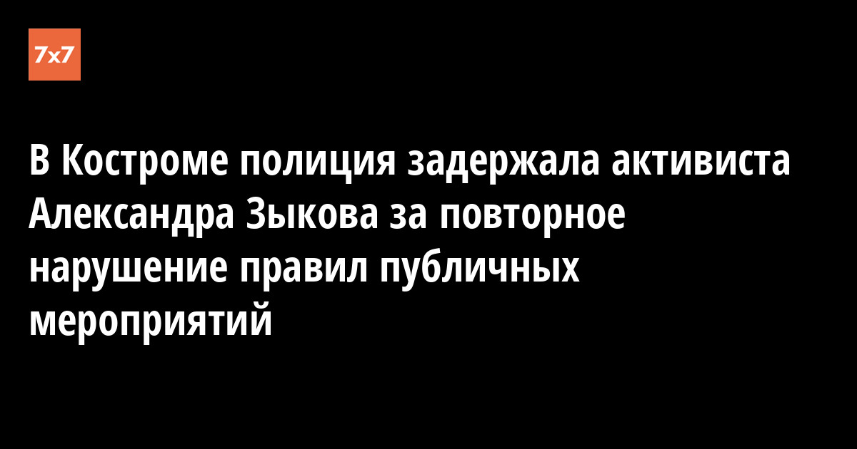 Бывшего заместителя координатора штаба Алексея Навального в Костроме Александра Зыкова задержали у него дома за повторное нарушение правил организации публичного мероприятия. Его отвезли в отдел полиции, сообщил активист 4 октября на своей странице в Facebook.