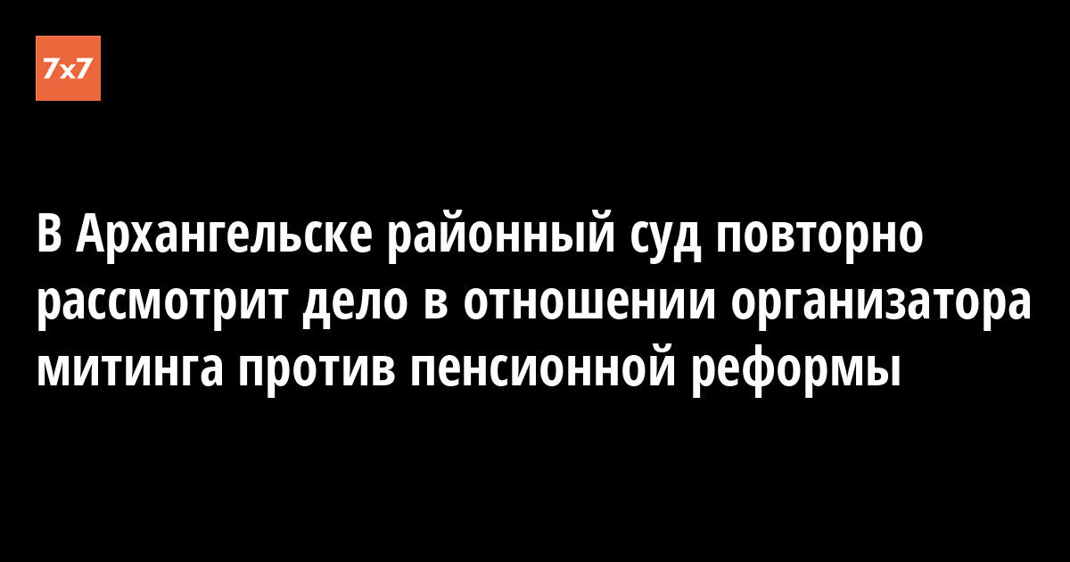 Архангельский областной суд 18 октября удовлетворил жалобы прокуратуры и полиции на решение Октябрьского районного суда, который признал действия организатора митинга против пенсионной реформы Анны Вешкурцевой законными, и отправил дело на новое рассмотрение. Об этом Вешкурцева рассказал корреспонденту «7x7».