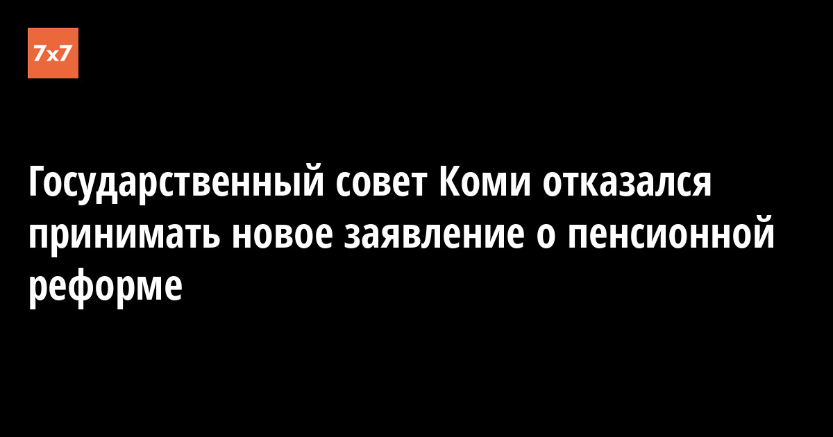 Большинством голосов депутаты Государственного совета Коми 25 октября отклонили инициативу Олега Михайлова из фракции КПРФ и Татьяны Саладиной из «Справедливой России» принять заявление, осуждающее пенсионную реформу. За прениями парламентариев наблюдал корреспондент «7x7».