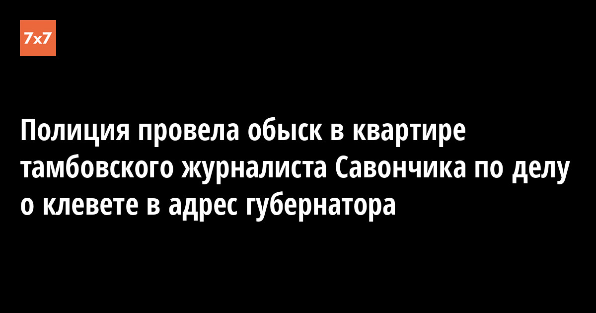 Полиция 2 ноября провела обыск дома у тамбовского журналиста Станислава Савончика, который проходит свидетелем по уголовному делу о клевете в адрес губернатора области Александра Никитина. Об этом «7x7» 3 ноября сообщила координатор местного штаба политика Алексея Навального Диана Рудакова.