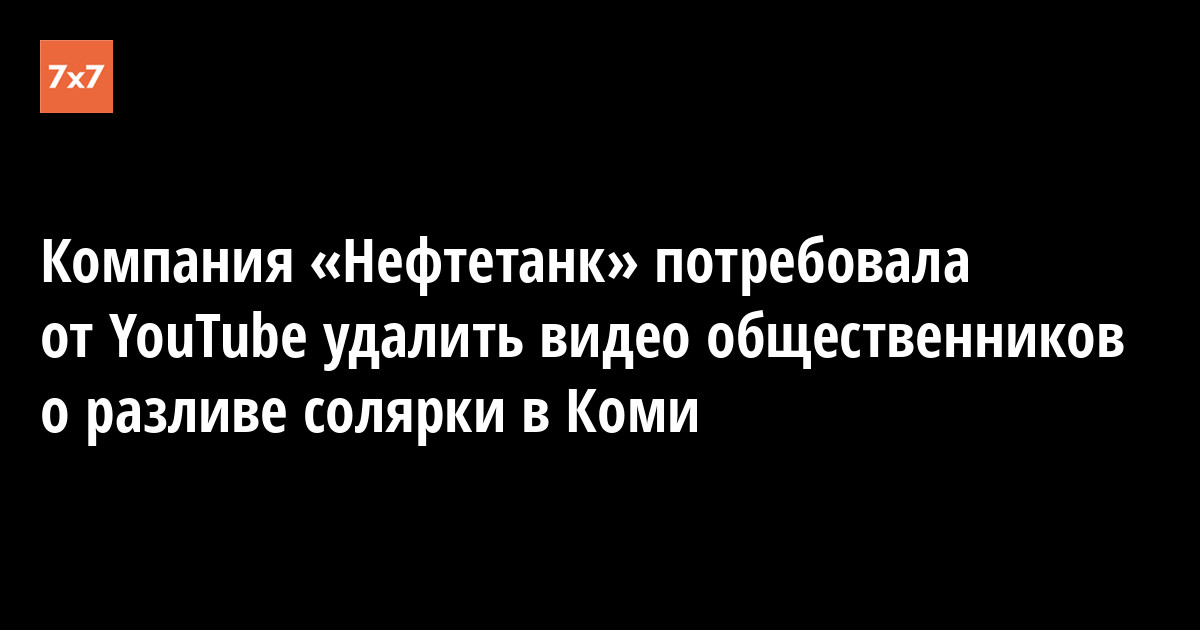 Компания-производитель резервуаров для топлива «Нефтетанк» потребовала от видеохостинга YouTube удалить с сайта видео общественников из Комитета спасения Печоры. Представитель компании Светлана Прохорова объяснила это тем, что «Нефтетанк» против использования в видео их товарного знака, — сообщил 5 декабря «7x7» зампредседателя общественной организации «Комитет спасения Печоры» Иван Иванов.