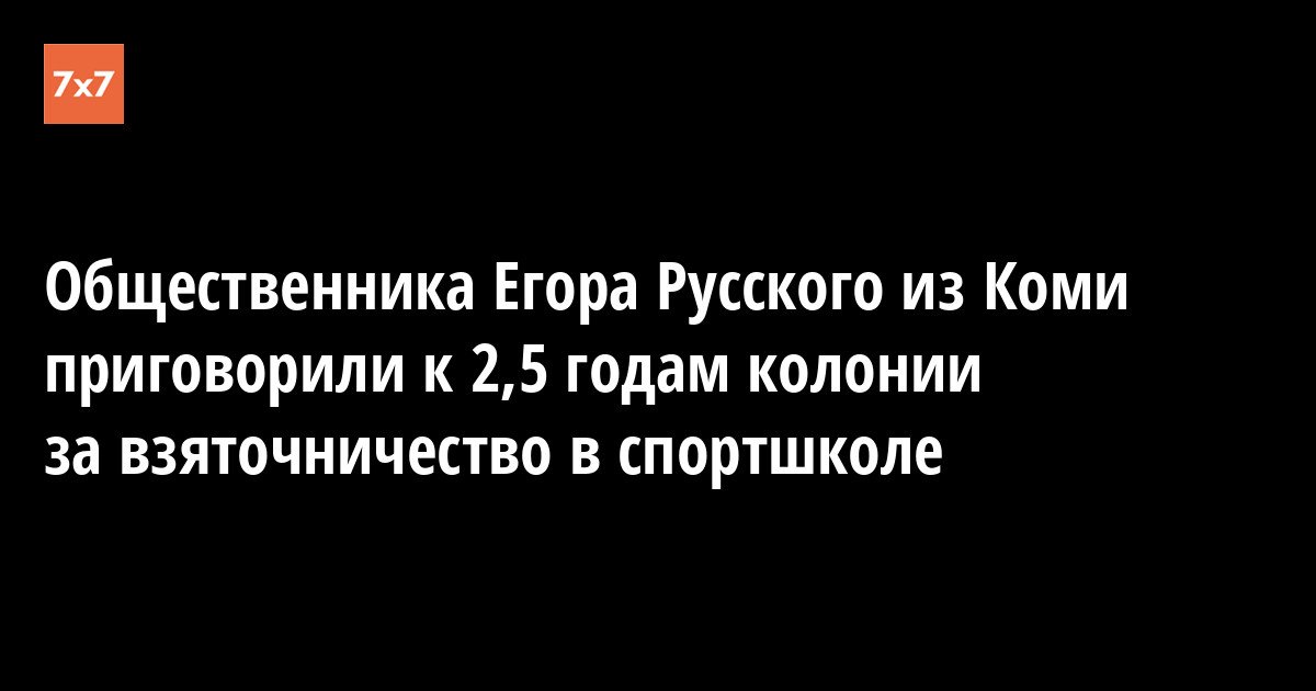 Ухтинский городской суд 6 декабря признал бывшего директора бассейна «Юность» и лидера движения «Республиканская коалиция» Егора Русского виновным сразу по нескольким статьям, связанным со взятками. Он получил 2 года и 6 месяцев лишения свободы в исправительной колонии общего режима, штраф 540 тыс. руб. и лишился права занимать руководящие должности. Об этом 6 декабря сообщила пресс-служба прокуратуры Республики Коми.