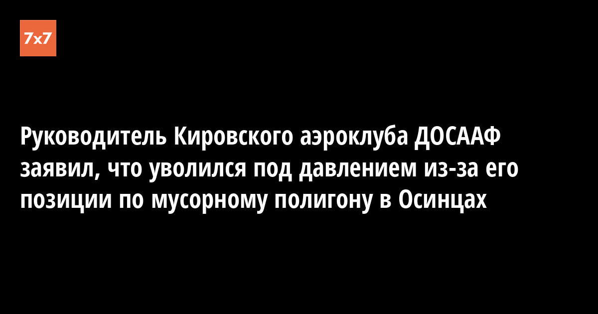 Начальник Кировского аэроклуба, летчик-инструктор Юрий Иванцов подписал заявление об уходе по собственному желанию. Он утверждает, что сделал это из-за отказа подписать мировое досудебное соглашение с администрацией Слободского района, которая выдала разрешение на строительство полигона твердых бытовых отходов в поселке Осинцы. Об этом 21 декабря «7x7» сообщил сам Иванцов.