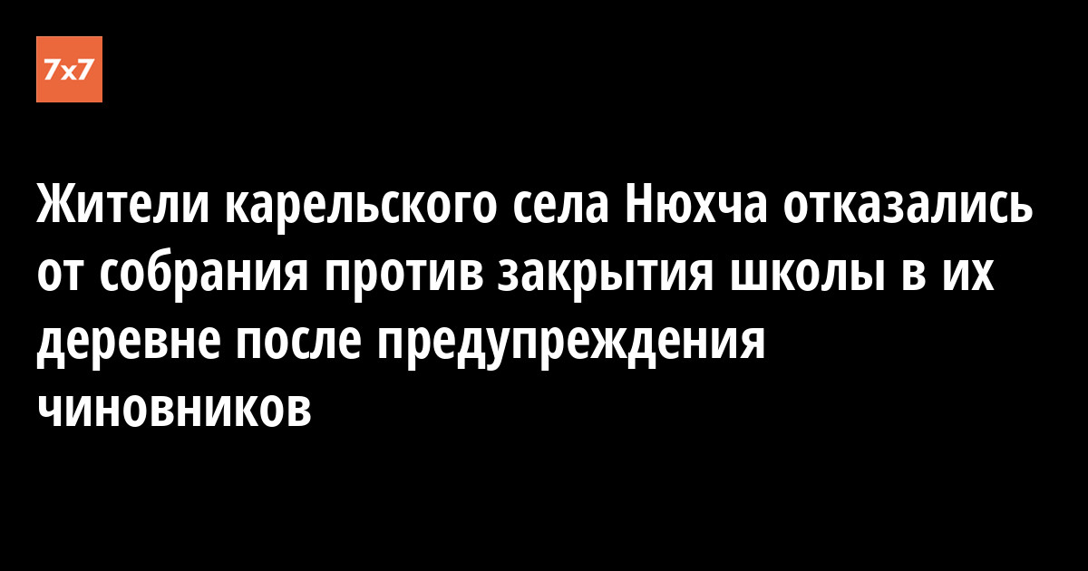 Жительница села Евгения Карманова рассказала «7x7», что чиновники запретили проводить им собрание, сославшись на разговор с управляющим делами районной администрации Юрием Заховаевым. По словам автора петиции против оптимизации образования в Нюхче Светланы Поповой, к ней домой 17 января приезжали трое представителей местной администрации и предупредили, что собрание, которое они запланировали на 20 января, незаконно.