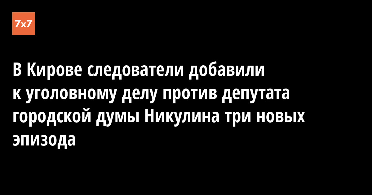 Управление Следственного комитета по Кировской области 29 января сообщило о новых эпизодах в уголовном деле о растрате в особо крупном размере против депутата городской думы Дмитрия Никулина. Никулин находится в розыске, остальные фигуранты переведены под домашний арест, уточнила «7x7» представитель ведомства Мария Меркулова.