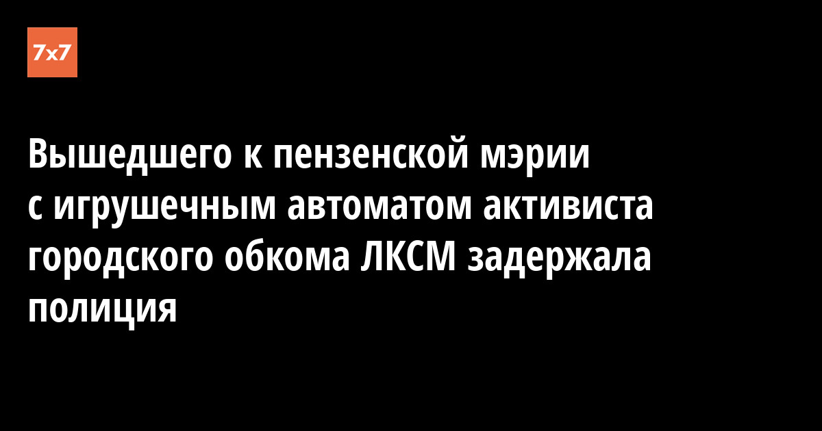 Сотрудники полиции 22 февраля задержали активиста пензенского обкома ЛКСМ Романа Стоцкого у входа в здание городской администрации, куда он вышел с игрушечным автоматом в знак протеста против действий депутата Пензенской городской Думы Андрея Фомина. Протестующие заявили, что депутат лоббирует интересы своих компаний на рынке пассажирских перевозок города. Об этом «7x7» 23 февраля рассказал руководитель пензенского комсомола Александр Рогожкин.