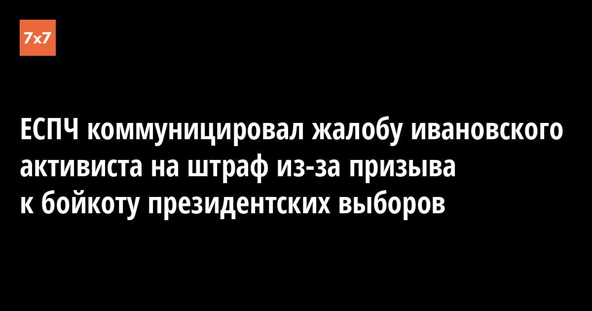 Европейский суд по правам человека (ЕСПЧ) 14 марта принял к рассмотрению жалобу координатора штаба Навального в Иваново Николая Дьячкова, которого суд оштрафовал за призыв к бойкоту выборов президента России. Об этом 21 марта в Facebook сообщил юрист Иван Жданов.