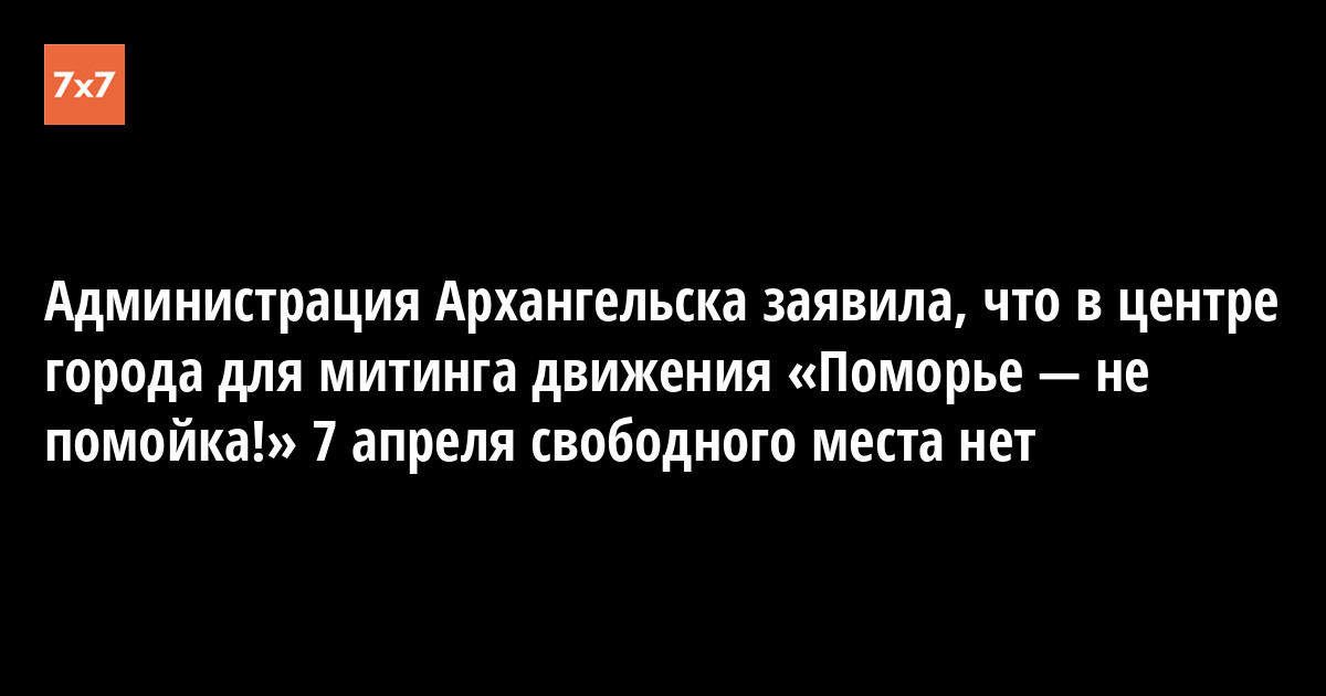 Администрация Архангельска заявила, что 7 апреля для проведения митинга движения «Поморье — не помойка!» в центре города свободного места нет, поскольку на 22 площадках согласовано празднование Всемирного дня здоровья. Об этом корреспонденту «7x7» 22 марта рассказал организатор антимусорных акций 2 декабря и 3 февраля Александр Песков.