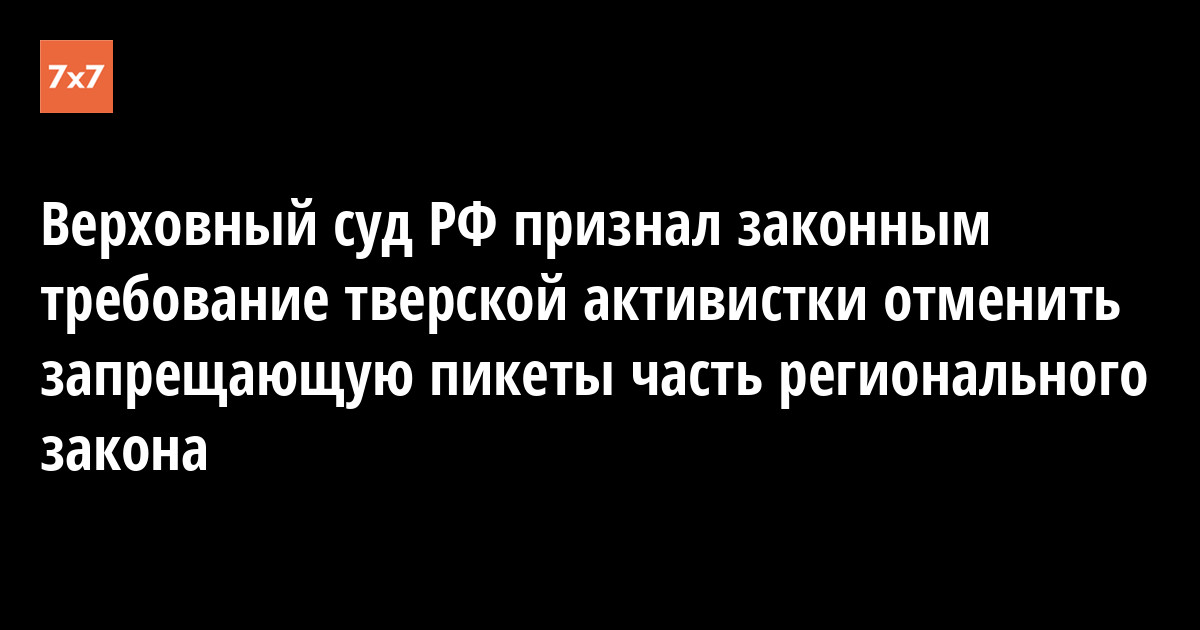 Верховный суд России удовлетворил иск пенсионерки Татьяны Джинчвеладзе, которая потребовала отменить часть регионального закона Тверской области, запрещающую пикеты, сообщил 26 марта «Коммерсантъ». Суд решил, что региональный закон противоречит федеральному законодательству. Решение суда опубликовано на сайте ВС РФ.