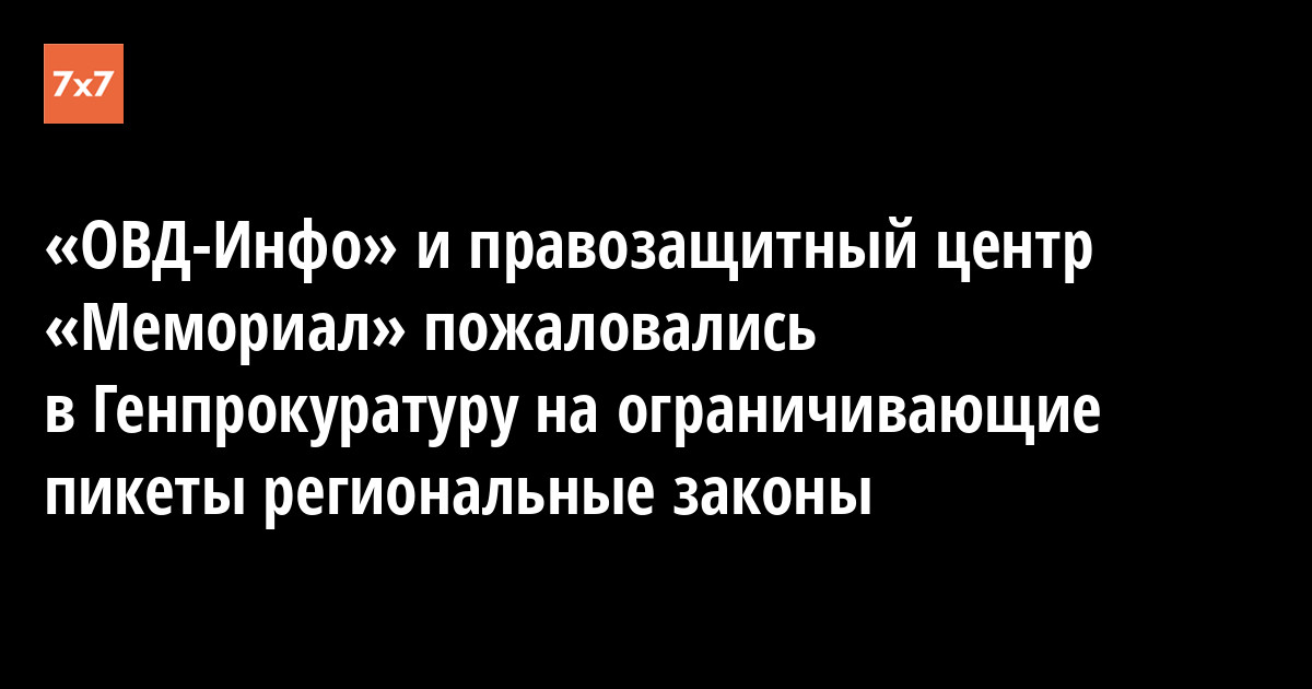 Юристы портала «ОВД-Инфо» и правозащитный центр «Мемориал» обратились с жалобами в Генеральную прокуратуру России на региональные законы о митингах, формулировки которых могут противоречить федеральным законам. Об этом сообщил 5 апреля портал «ОВД-Инфо».