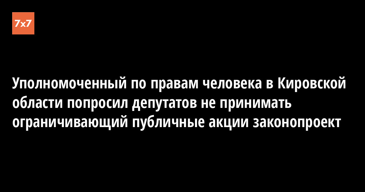 Омбудсмен в Кировской области Александр Панов направил обращение в Законодательное собрание Кировской области с предложением не принимать законопроект депутата Валерия Басюка, вносящий изменения в правила проведения публичных акций. Документ с ответом Панова передала редакции «7x7» 8 апреля активист движения «Слободской район против мусорного полигона» Татьяна Столбова.