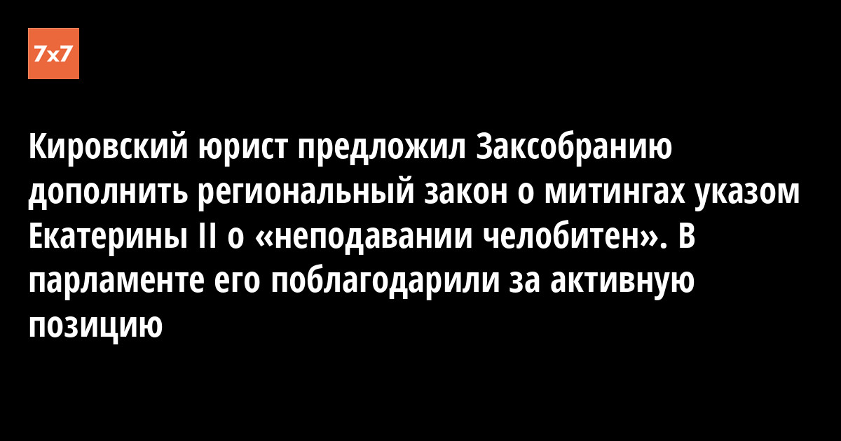 Кировский юрист Ярослав Михайлов предложил Заксобранию региона дополнить правила проведения публичных акций запретом жаловаться на власть. За основу он предложил взять указ императрицы Екатерины II. 22 апреля Михайлов получил ответ от исполняющего обязанности Законодательного собрания Кировской области Романа Титова — тот поблагодарил его за предложение. Копию письма Михайлов 22 апреля опубликовал на своей странице в Facebook.