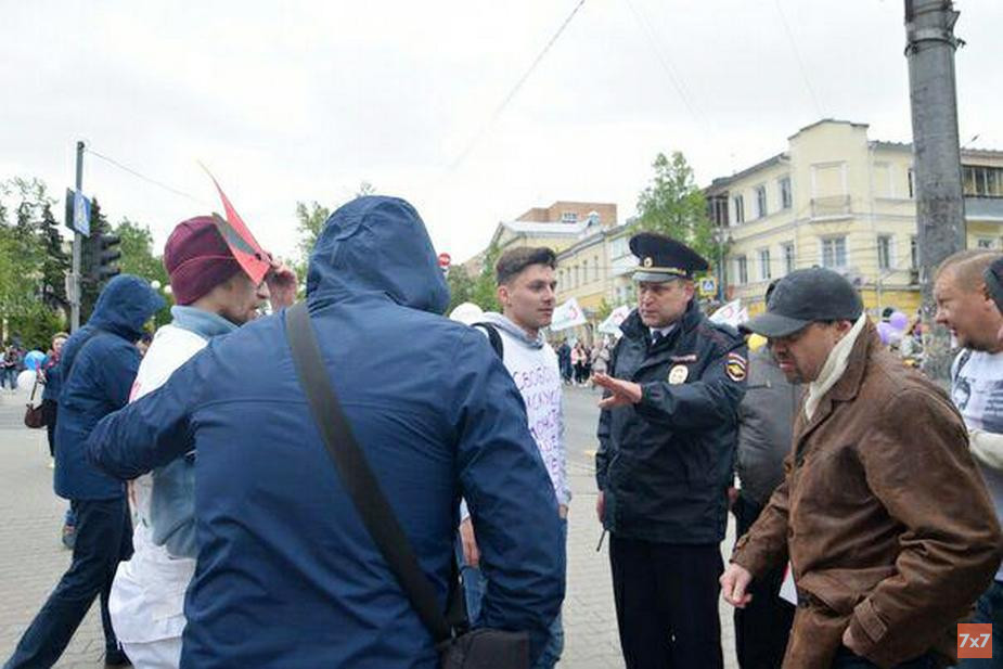 В Курске группа молодых людей, которым власти не согласовали проведение Монстрации на улице Ленина, вместе с организатором Иваном Звягиным вышли на прогулку в майках с лозунгами в центре города. Сначала полицейские заподозрили их в желании примкнуть к демонстрации профсоюзов, а потом задержали, сообщил корреспондент «7x7»