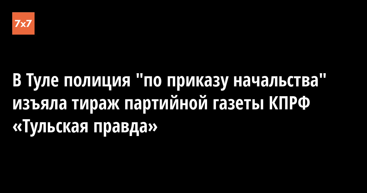 Полиция 8 мая изъяла тираж газеты «Тульская правда» и задержала нескольких членов КПРФ. Эту информацию подтвердил корреспонденту «7x7» секретарь обкома и главный редактор газеты Михаил Фёдоров.