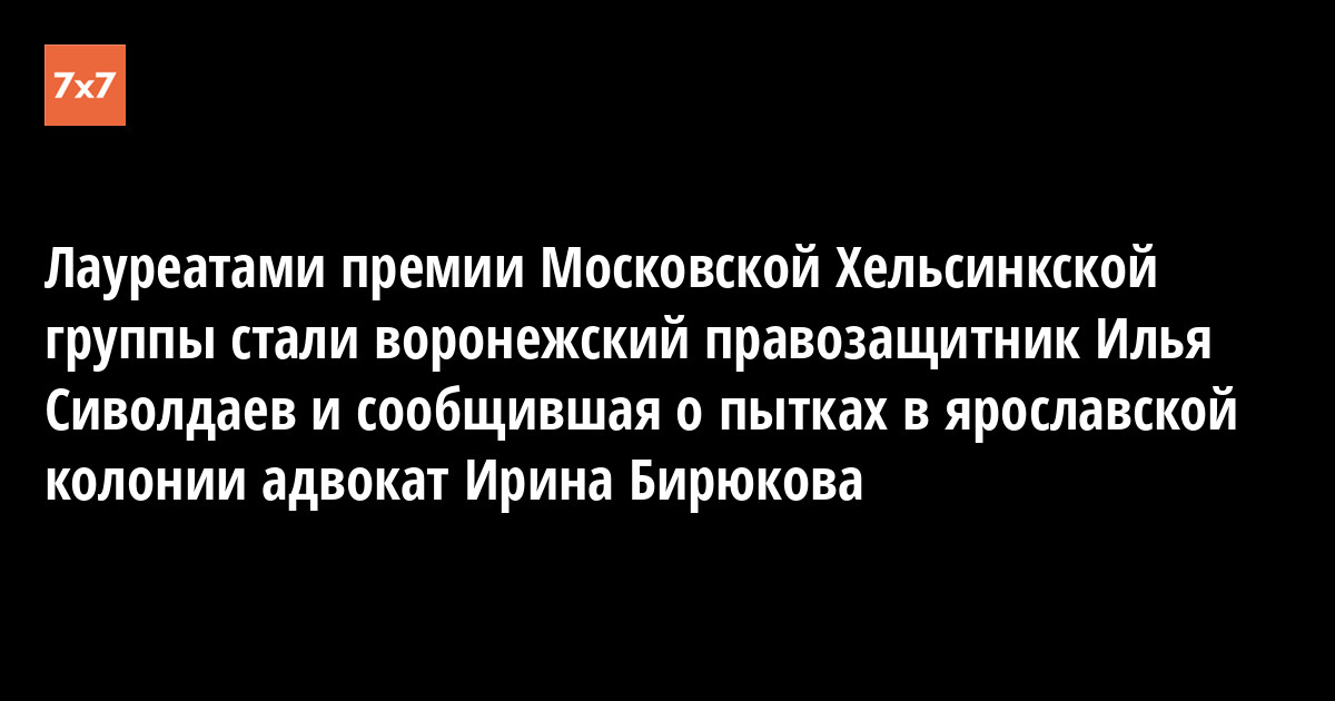 Лауреатами премии Московской Хельсинкской группы в области защиты прав человека в 2019 году стали десять человек. Среди них — воронежский правозащитник Илья Сиволдаев и адвокат правозащитного фонда «Общественный вердикт» Ирина Бирюкова. Информация о награжденных опубликована 17 мая на сайте МХГ.