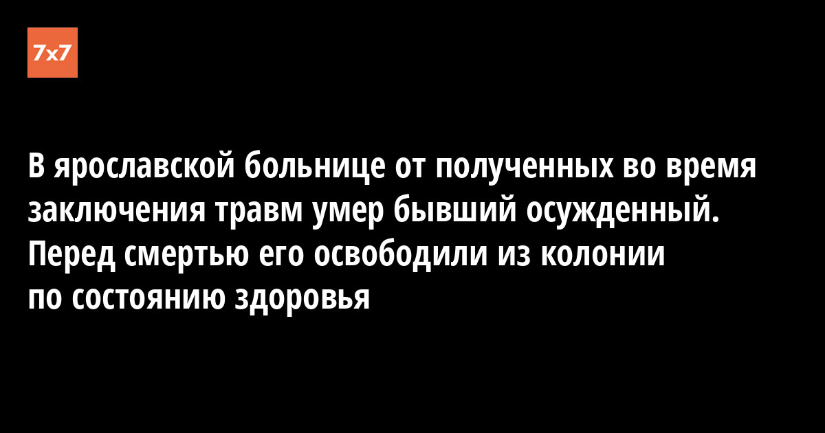 В ярославской клинической больнице №2, не приходя в сознание, скончался бывший заключенный 29-летний Алексей Сидякин. Его освободили по решению суда после того, как он попал в реанимацию. Об этом 26 мая сообщил правозащитник Владимир Осечкин на портале «Гулагу.нет».