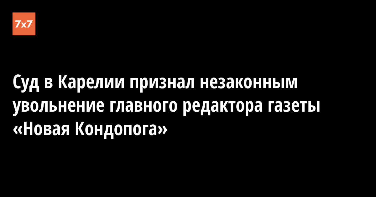 В Кондопожском городском суде 30 мая завершилось рассмотрение дела об увольнении главного редактора районной газеты «Новая Кондопога» Юлии Шевчук. Судья Светлана Береговая признала незаконным решение районной администрации об увольнении Шевчук и восстановила ее в должности, передает корреспондент «7x7».