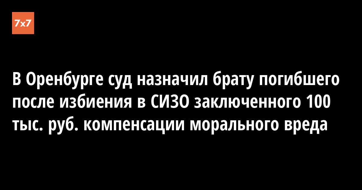 Ленинский районный суд Оренбурга обязал Федеральную службу исполнения наказаний (ФСИН) России выплатить Евгению Ткачуку, брат которого Владимир Ткачук умер после избиения сотрудниками следственного изолятора № 2 Орска, 100 тыс. руб. компенсации морального вреда. Об этом 4 июня сообщила пресс-служба Оренбургского отделения Комитета против пыток.