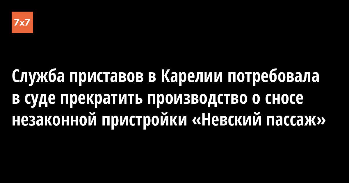 Петрозаводский городской суд 5 июня начал рассматривать иск судебного пристава карельского управления федеральной службы судебных приставов Ольги Бароновой, которая требует прекратить исполнительное производство о сносе незаконной торговой пристройки «Невский пассаж», так как снести ее невозможно. Об этом сообщил корреспондент «7x7».