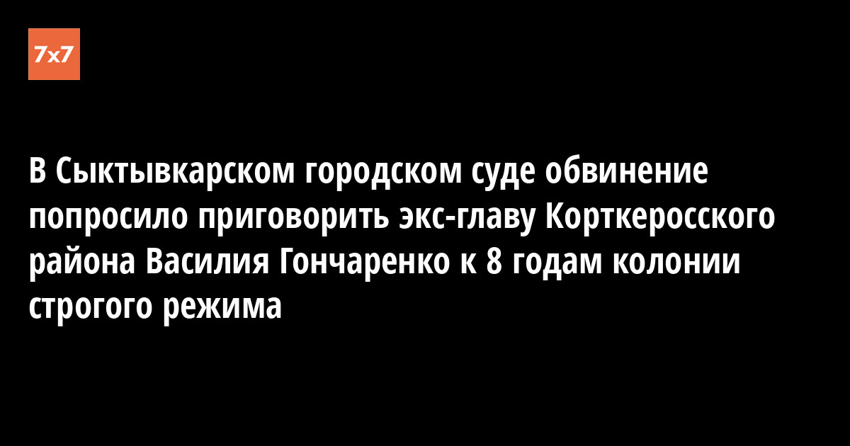 На судебном заседании в Сыктывкарском районном суде государственный обвинитель попросил назначить бывшему главе Корткеросского района Республики Коми Василию Гончаренко наказание в виде восьми лет лишения свободы в колонии строгого режима со штрафом 2 млн 750 тыс. руб. Обвинение считает доказанной вину Гончаренко в получении взятки. Об этом 25 июня сообщил портал «Комиинформ».
