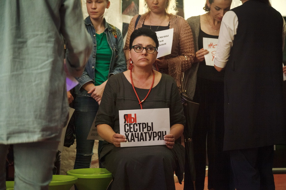 В фойе участники акции сделали общее фото с плакатами "Я/Мы сестры Хачатурян", "Закон о домашнем насилии нужен каждому". Участники акции предложили продолжить кампанию в защиту девушек и провести уличную акцию или более масштабную общественную дискуссию с участием представителей власти, занимающихся социальной защитой.