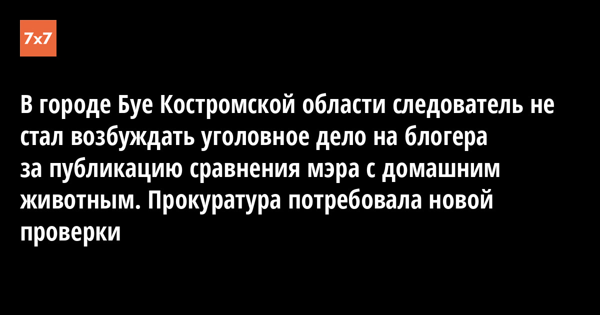 Следователь Буйского межрайонного отдела управления СКР по Костромской области Елена Соловьёва отказалась возбуждать уголовное дело на блогера Влада Дружкова из-за публикации видеозаписи, где местный житель сравнивает главу администрации Игоря Ральникова с домашним животным из-за некачественно сделанной городской ливневой канализации, однако Буйская межрайонная прокуратура потребовала провести проверку заново. Заявление в полицию написал сам чиновник. Копию отказа СКР и требование дополнительной проверки прокуратурой 14 июля передал «7x7» Владислав Дружков.