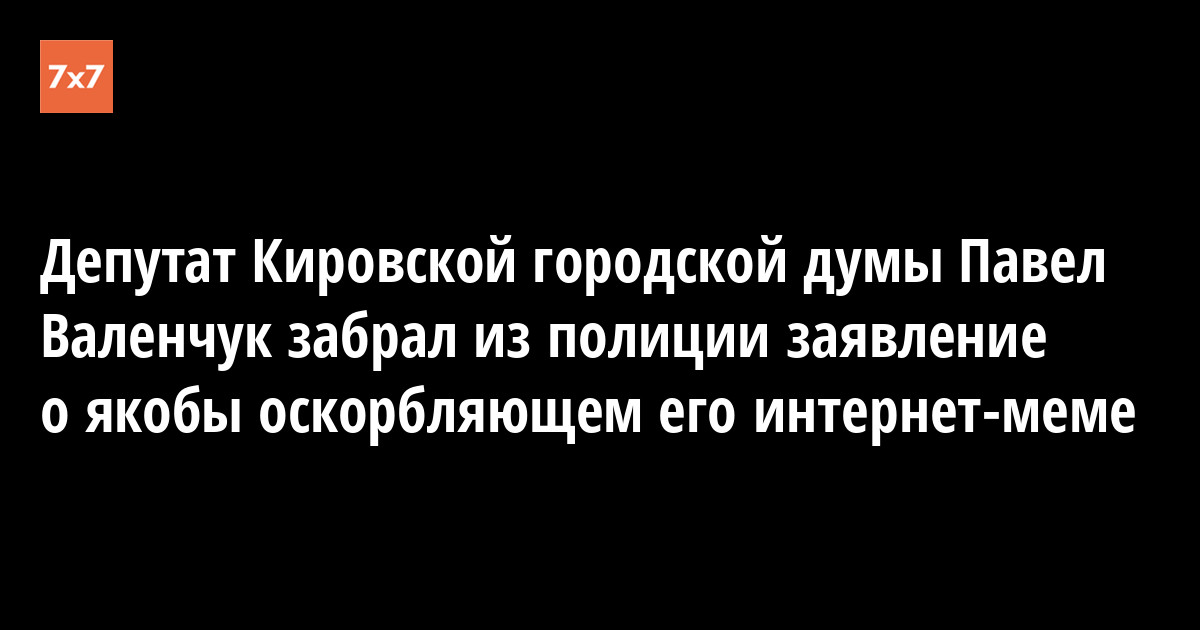 Кировский депутат Павел Валенчук забрал из МВД заявление на администратора паблика «Борщ» и пользователя Instagram, разместивших иронический интернет-мем с его изображением. Валенчук признал, что "в настоящее время креатив существует везде, а провокация — это нормальная его часть". Об этом он сообщил вечером 17 июля на своей странице «ВКонтакте».