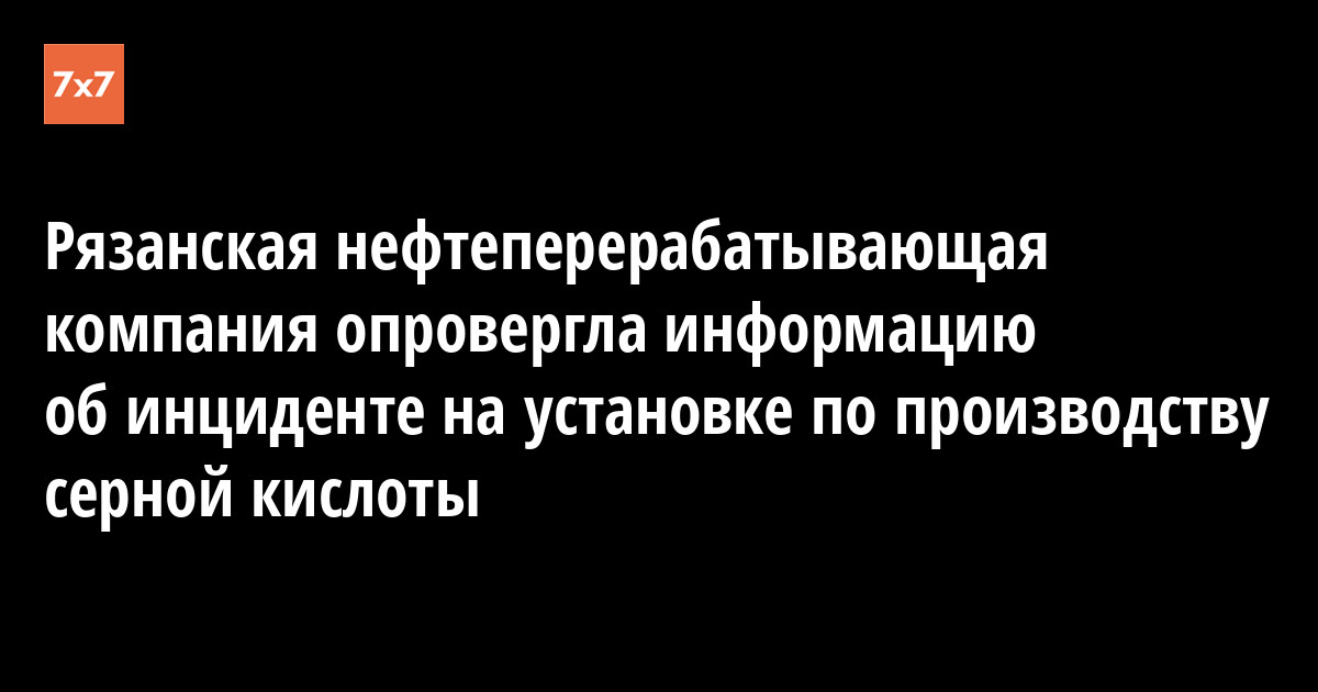 Пресс-служба Рязанской нефтеперерабатывающей компании заявила, что информация об инциденте на установке по производству серной кислоты не соответствует действительности. Об этом 24 июля сообщило издание ya62.ru, в редакцию которого пришел пресс-релиз от предприятия.