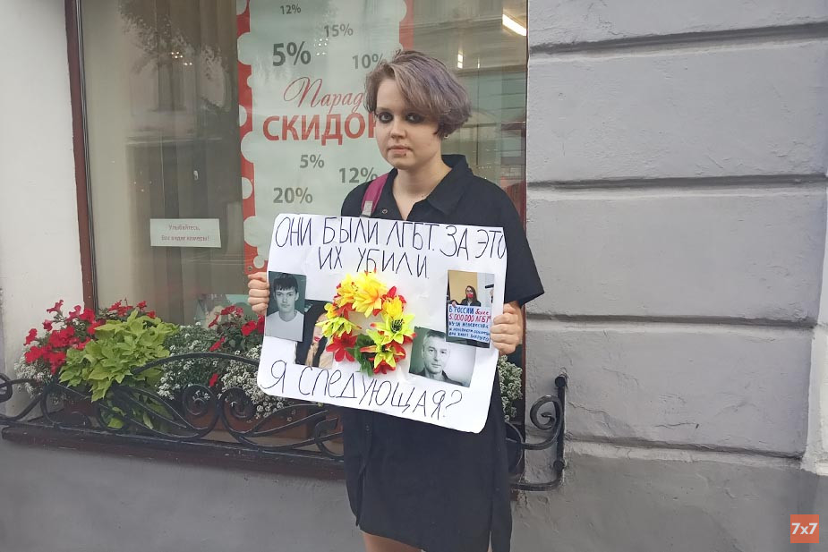 Ярославская ЛГБТ-активистка Алан Ерох вышла с пикетом в память об убитой петербургской активистке Елене Григорьевой. Ерох считает, что Григорьеву могли убить активисты гомофобного движения «Пила». Об этом она сказала 25 июля корреспонденту «7x7».