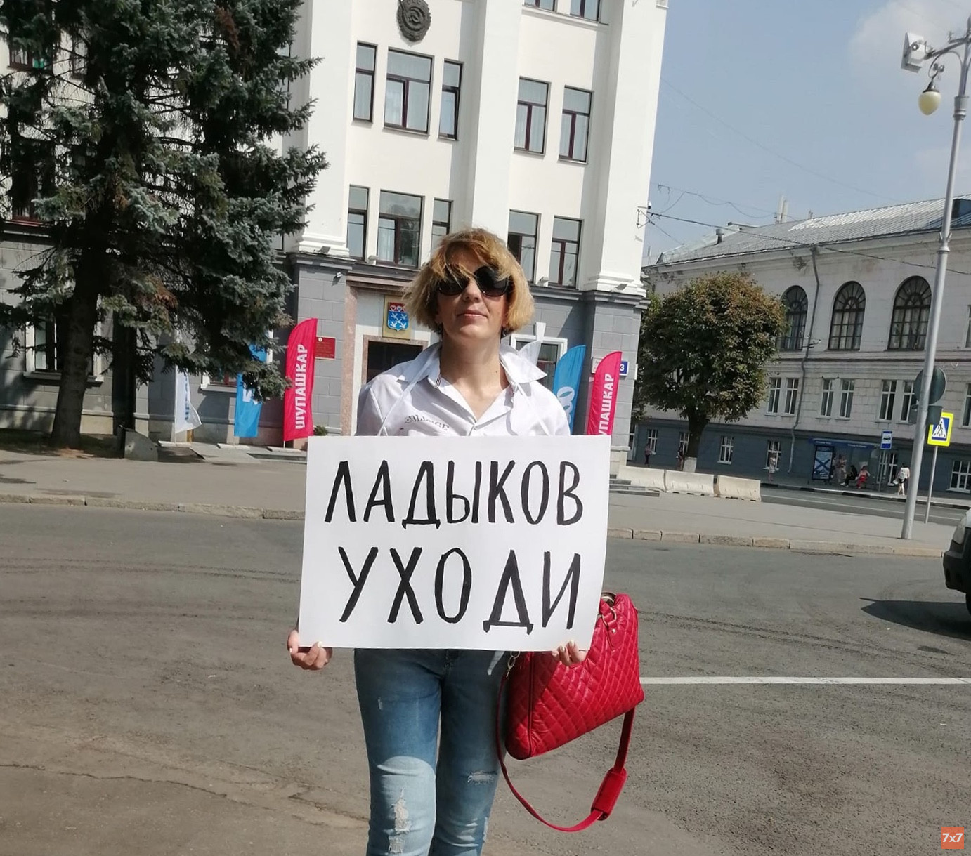 Организатор акций «Прогулки свободных людей» в Чувашии Елена Блинова, которую с двумя детьми суд выселяет из квартиры, вышла на одиночный пикет к зданию администрации Чебоксар и потребовала отправить в отставку сити-менеджера Алексея Ладыкова, сообщил 26 июля корреспондент «7х7».