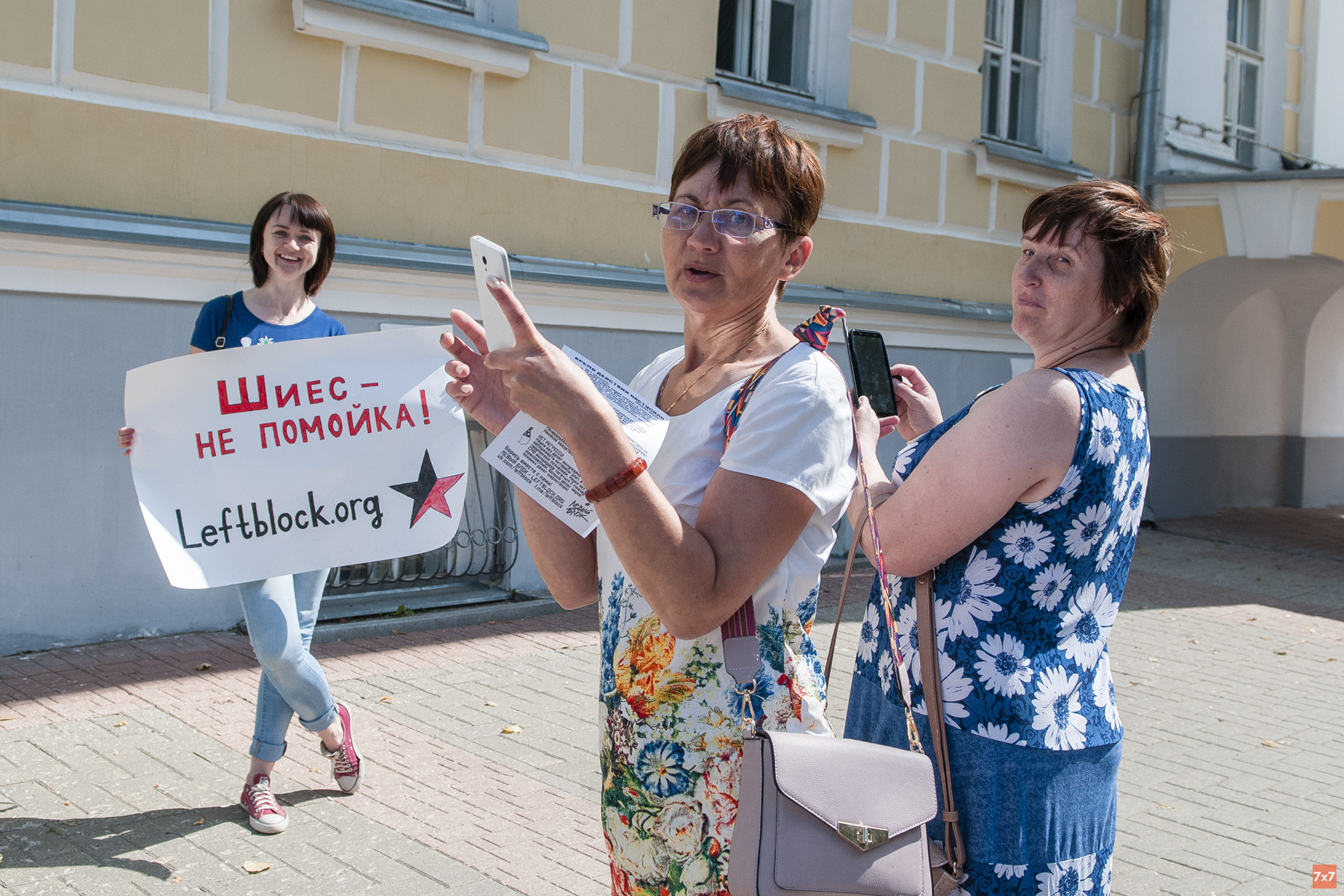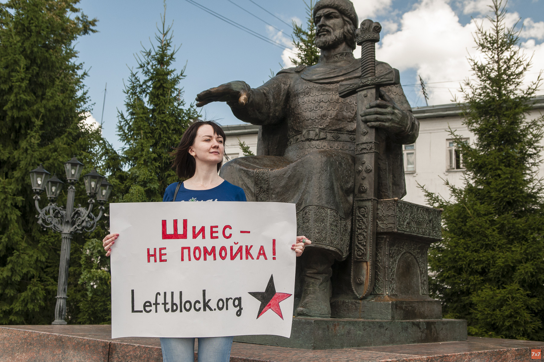 Две участницы движения «Левый блок» провели 26 июля возле костромской мэрии одиночные пикеты в поддержку активистов, выступающих против строительства в Архангельской области на станции Шиес мусорного полигона для захоронения московских отходов, сообщает корреспондент «7х7».