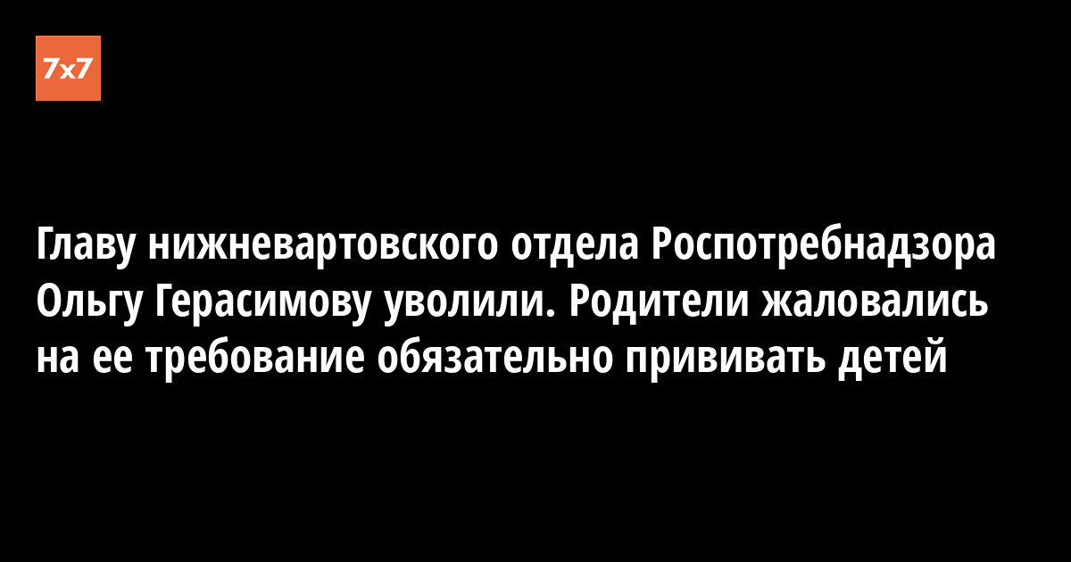 Главу нижневартовского отдела Роспотребнадзора Ольгу Герасимову, постановления которой об обязательных прививках детей родители считали незаконными, освободили от занимаемой должности. Информация об этом появилась 1 августа в закрытом чате «Здоровье детей» соцсети «ВКонтакте» — там разместили фото документа, датированного 31 июля.