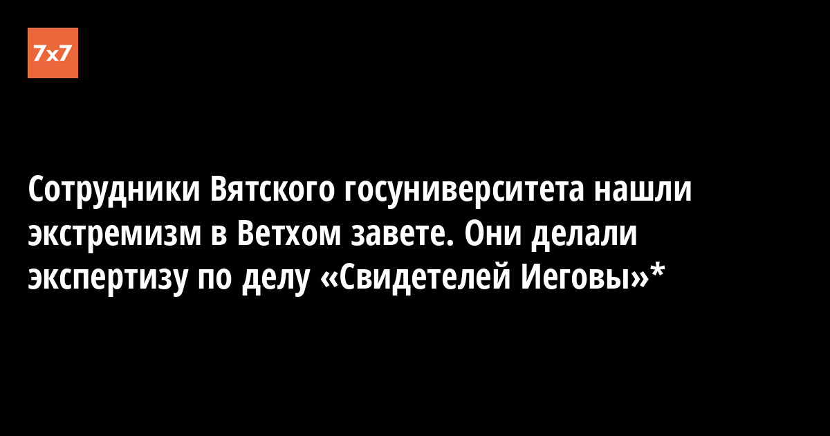 Сотрудники Вятского государственного университета провели психолого-лингвистическую экспертизу (есть в распоряжении «7х7») литературы, изъятой у задержанных свидетелей Иеговы*. Юрист Ян Чеботарёв 13 августа сообщил в Facebook, что эксперты нашли экстремизм во фразе, дословно цитирующей псалом из Ветхого завета.