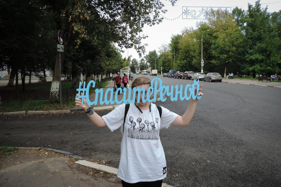 Люди собрались около речного вокзала и делали фотографии с деревянным хештегом #СпаситеРечной. Активисты призвали делиться фотографиями с мероприятия и распространять хештег в социальных сетях. Так они надеются привлечь внимание местных властей к проблеме.