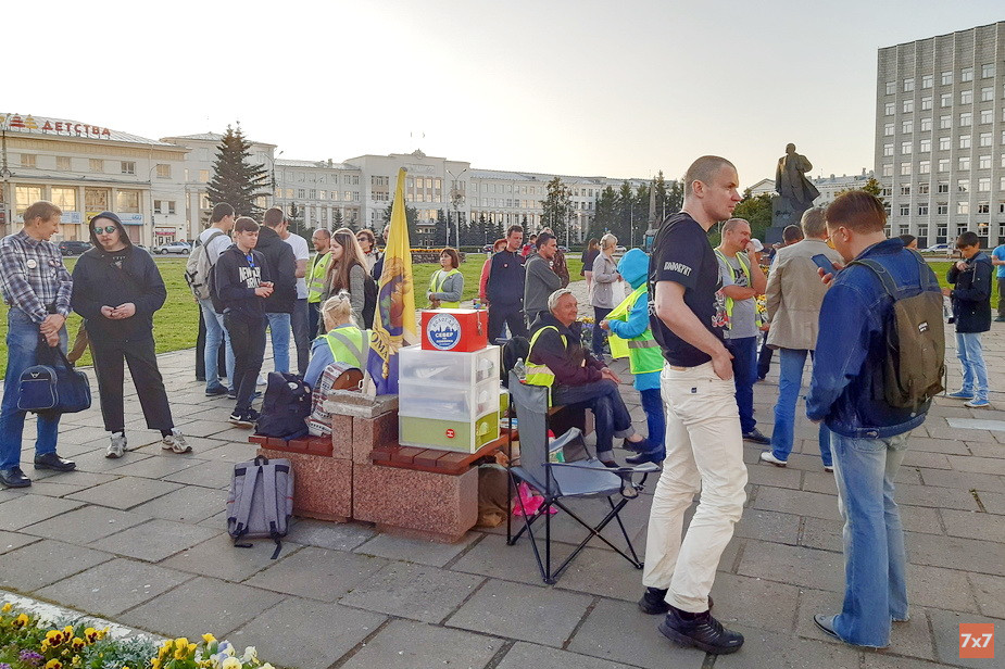 На площади Ленина в Архангельске около 70 человек вышли вечером 18 августа на протестную прогулку в поддержку задержанных полицией на станции Шиес активистов, наблюдавших за возобновлением доставки топлива на стройку полигона для московского мусора. Два человека стояли в одиночных пикетах. На прогулку пришли и туристы из других городов.