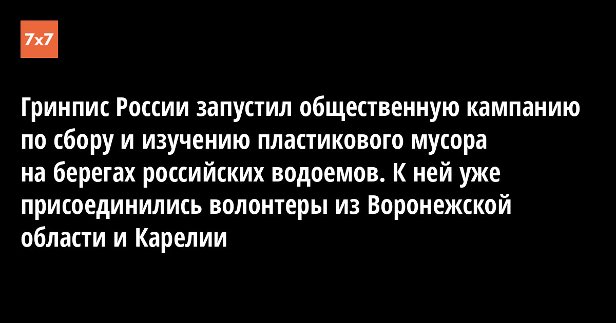 Экологическая организация «Гринпис России» объявила о начале общественной кампании по сбору и изучению пластика на берегах российский водоемов. Информация о собранном пластике станет аргументом для законодательной инициативы об ограничении и запрете использования одноразового пластика в России. Добровольно участвовать в этой кампании может каждый совершеннолетний житель страны. Об этом 21 августа в своем письме «7x7» сообщил Гринпис России.