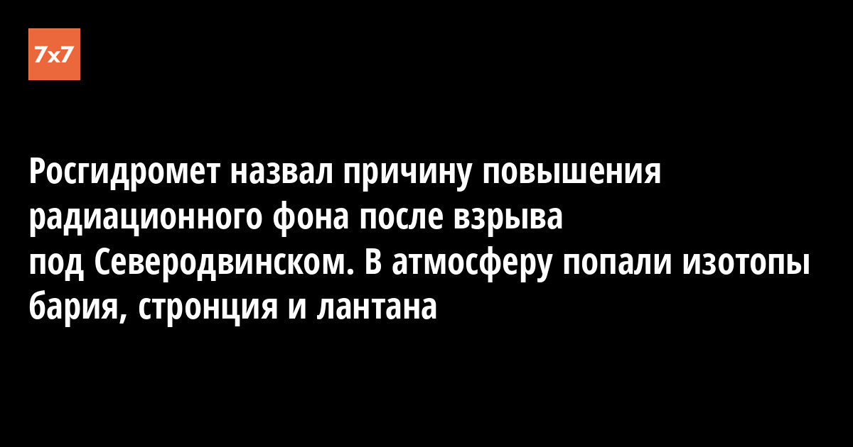 Повышение радиационного фона в Северодвинске в день взрыва на военном объекте у села Нёнокса 8 августа произошло из-за прохождения облака радиоактивных газов. Оно возникло от распада изотопов бария, стронция и лантана. Об этом 26 августа сообщило новостное агентство «Интерфакс» со ссылкой на Федеральное агентство по гидрометеорологии и мониторингу окружающей среды (Росгидромет).