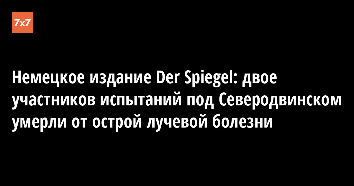 Двое пострадавших, доставленных после неудачных испытаний на военном объекте рядом с поселком Нёнокса в Архангельской области, умерли от последствий сильного радиоактивного облучения. Травмы от взрыва, с которыми их доставили, были тяжелыми, но не представляли угрозы для жизни. Об этом немецкому изданию Der Spiegel на условиях анонимности рассказал врач областной больницы в Архангельске, куда доставили пострадавших. Перевод статьи 29 августа опубликовал портал «Инопресса».