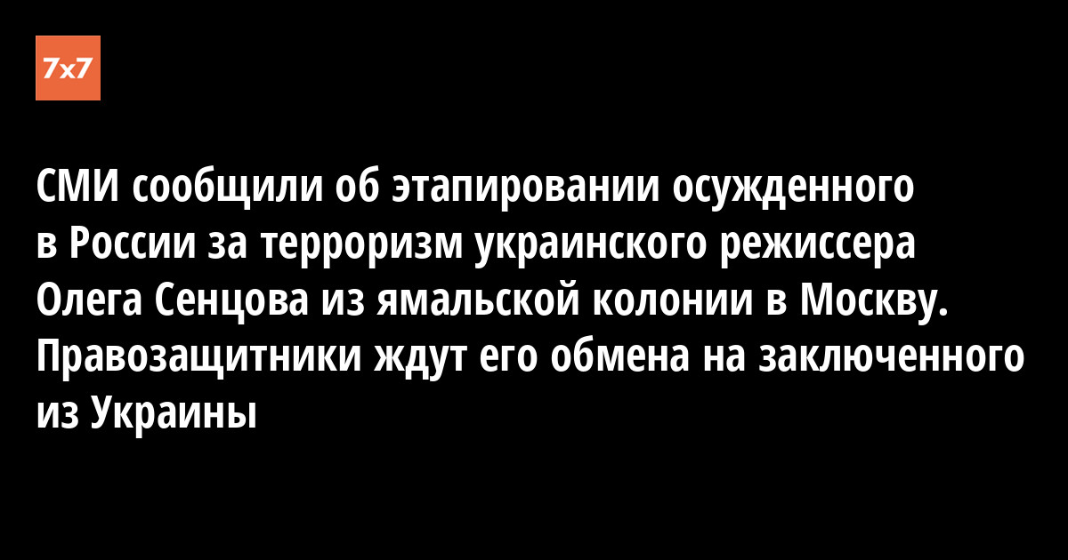 Издания «База» и агентство «Интерфакс» со ссылкой на свои источники 29 августа сообщили о переводе украинского политзаключенного режиссера Олега Сенцова из ямальского Лабытнанги в московское СИЗО. СМИ связали эти сообщения с подготовкой обмена заключенными Украины и России.
